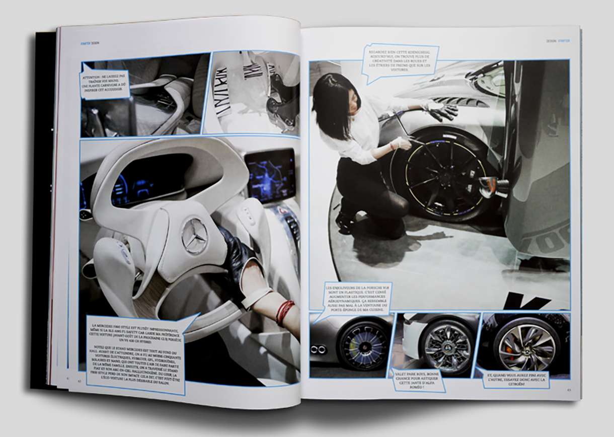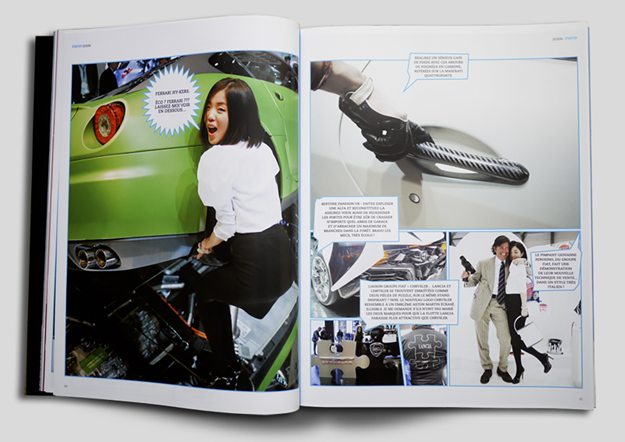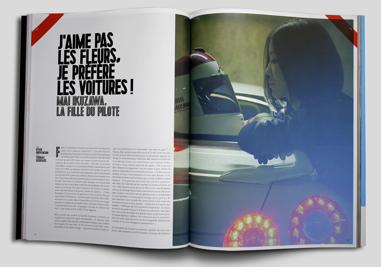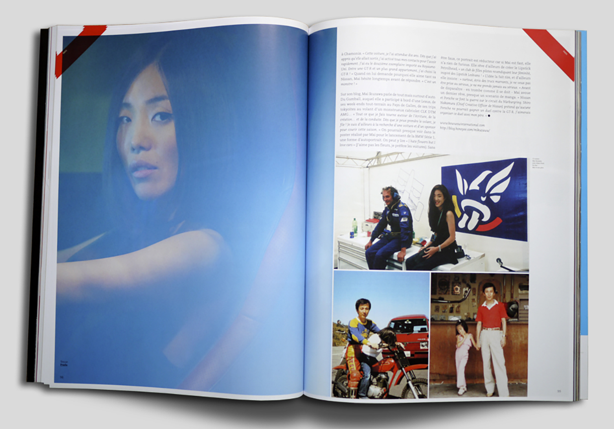 Mai Ikuzawa, Creative Director of Bow Wow becomes the muse of Intersection Magazine for their latest issue. The issue begins with an insightful interview of her life as a racing driver and a Creative Director. The second section is an exclusive review of the Geneva Motor Show by Ikuzawa with her sense of wit and ‘otaku’ knowledge. Last but not least is a bonus feature of her dog, Debu san, in a truck driving stunt.