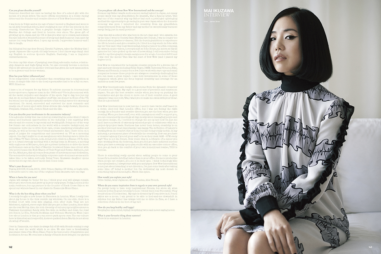 Globally renowned, Japan's most popular Men's and Lifestyle Magazine 'Brutus' comes to London to interview Mai Ikuzawa, as she is selected to be one of the world’s most influential automotive ambassadors.